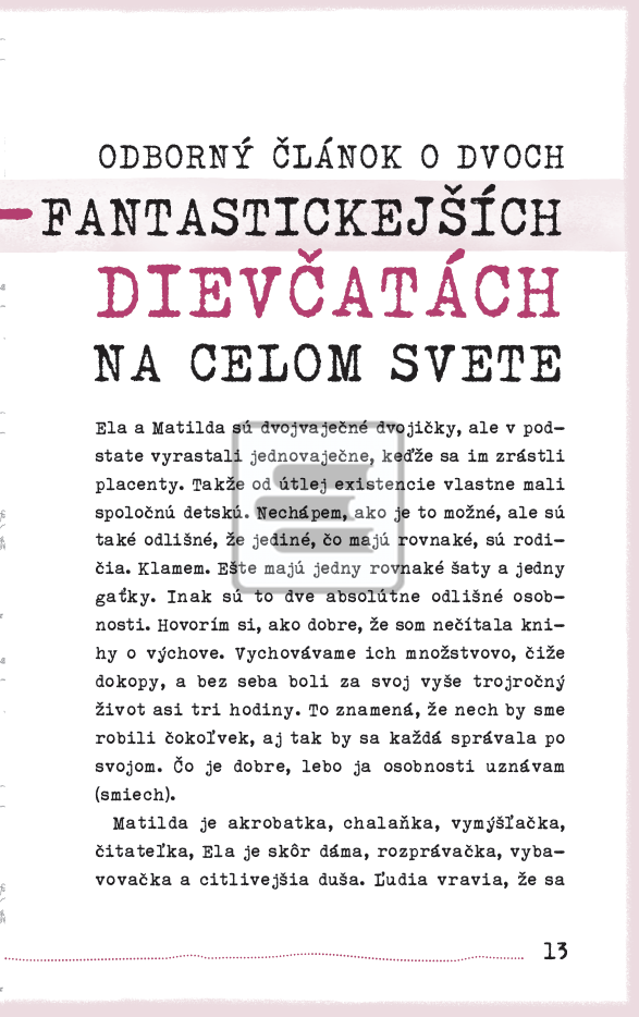 Úspešná slovenská herečka, moderátorka a autorka vtipných prúžkovaných tričiek Kristína Farkašová vydala pred rokom knihu o materstve Som mama. O živote s dvojičkami, ktoré rastú a menia sa z Knedlí na Dievčatá, napísala aj druhú knihu. Humor jej ani teraz nechýba, hoci sa často smeje pomedzi slzy a sople. Dievčatá objavujú svet a zanechávajú v ňom nezmazateľnú dvojradovú stopu. A aj keď už majú na kdečo vlastný škôlkarský názor, ich rodička im i sebe ustavične s láskou pripomína: Stále som mama!