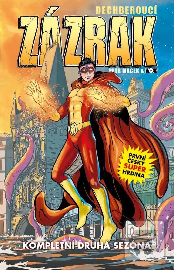 ZÁZRAKY NEKONČÍ! Neprodleně po skončení první třináctidílné řady komiksového měsíčníku Dechberoucí Zázrak na ni navázala řada druhá, rámovaná lednem až prosincem 2017. Scenárista Petr Macek a výtvarník Petr Kopl tak mohli pokračovat v dobrodružstvích prvního českého superhrdiny, který přepsal dějiny tuzemského komiksu. České legendy jako kouzelníka Žita nebo vltavské vodníky tentokrát doplní postavy z exotické indické mytologie Hanuman či Ganéša. Vychutnejte si všech dvanáct čísel druhé sezóny Zázraka pěkně pohromadě! Kniha Dechberoucí Zázrak: Kompletní druhá sezóna obsahuje sešity 14 až 25 a jako bonus první sešit komiksu SuperKámo. O čem komiks je? Při pokusu odčerpat pomocí moderní technologie tajemnou energii z prastarého golema došlo v Národním muzeu k nehodě. Mladý student David Daneš, který se k incidentu připletl, byl při explozi vystaven neznámému záření, jež mu dodalo nečekané schopnosti. Jaké přesně a na jakém principu fungují, teprve poznává. Protože se ale postavil na stranu práva a pořádku, pro veřejnost je teď superhrdina: ZÁZRAK!
