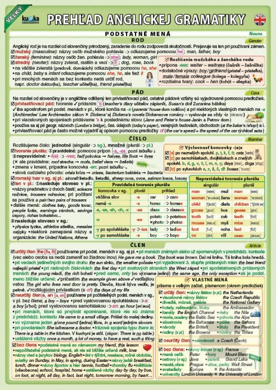 Titul ponúka ucelený a systematický pohľad na pravidlá anglického jazyka, spracovaný v praktickom a prehľadnom formáte A4. Vďaka svojej zrozumiteľnosti je ideálnou pomôckou pre študentov základných aj stredných škôl, ktorým pomôže zorientovať sa v základoch aj v zložitejších gramatických javoch.